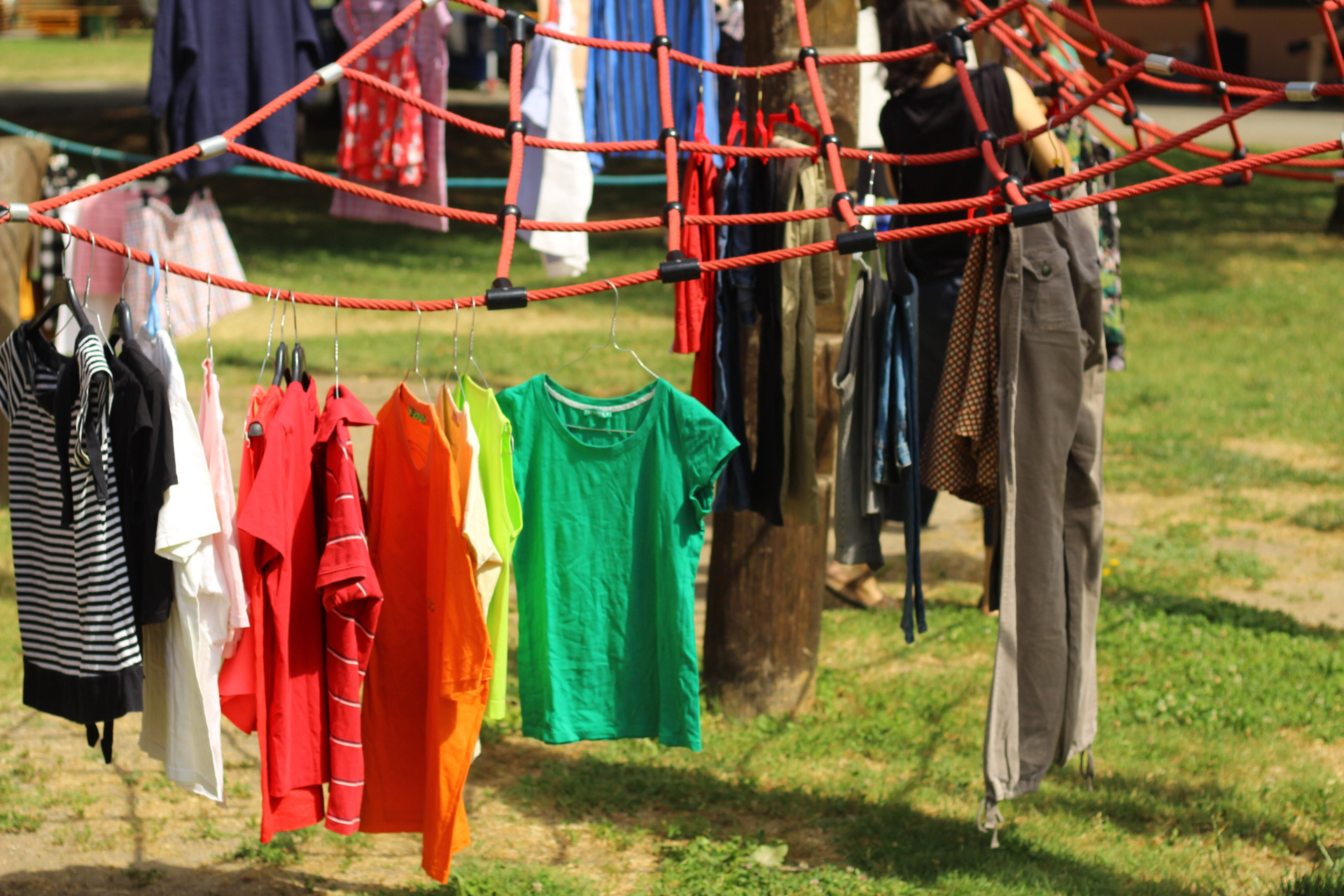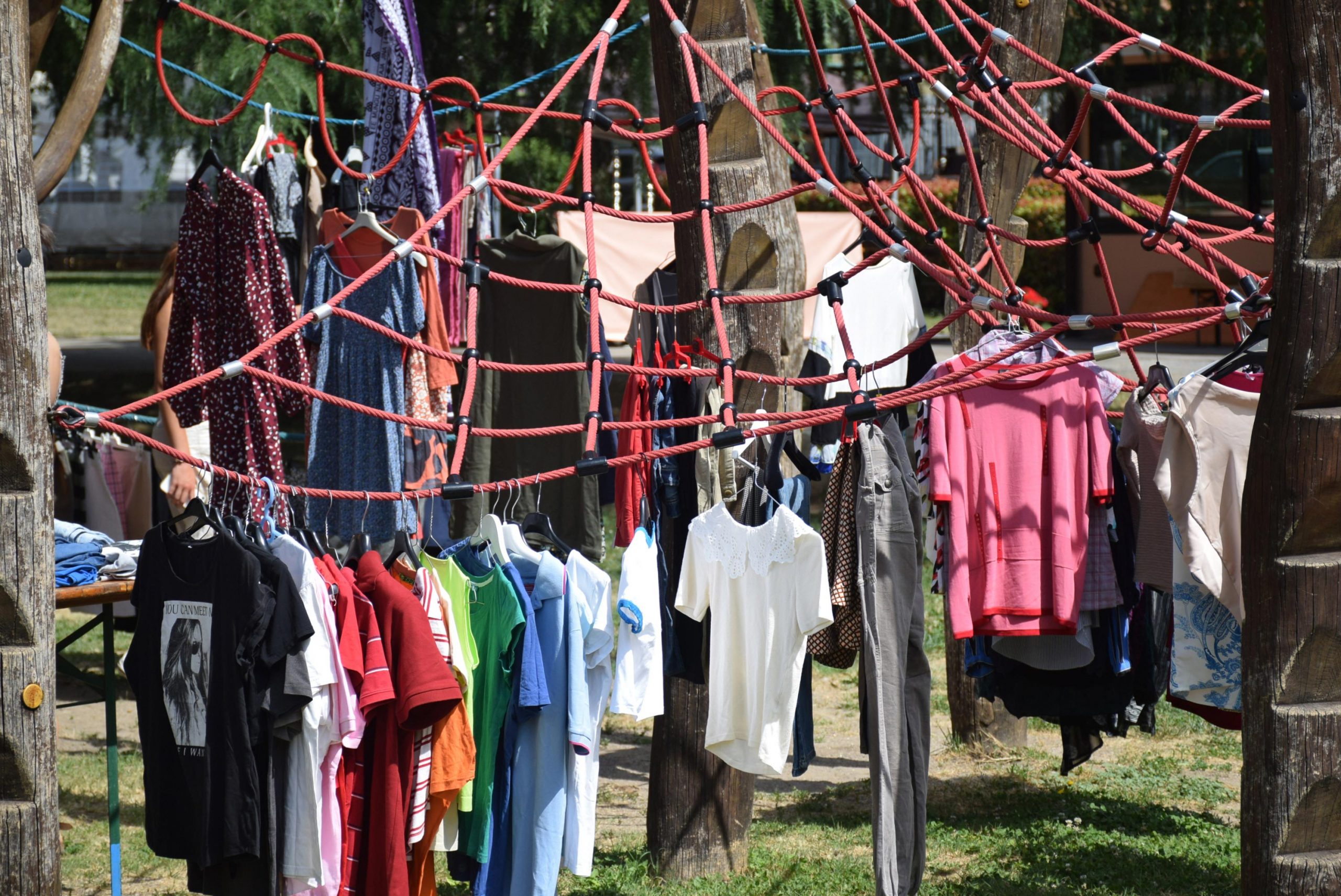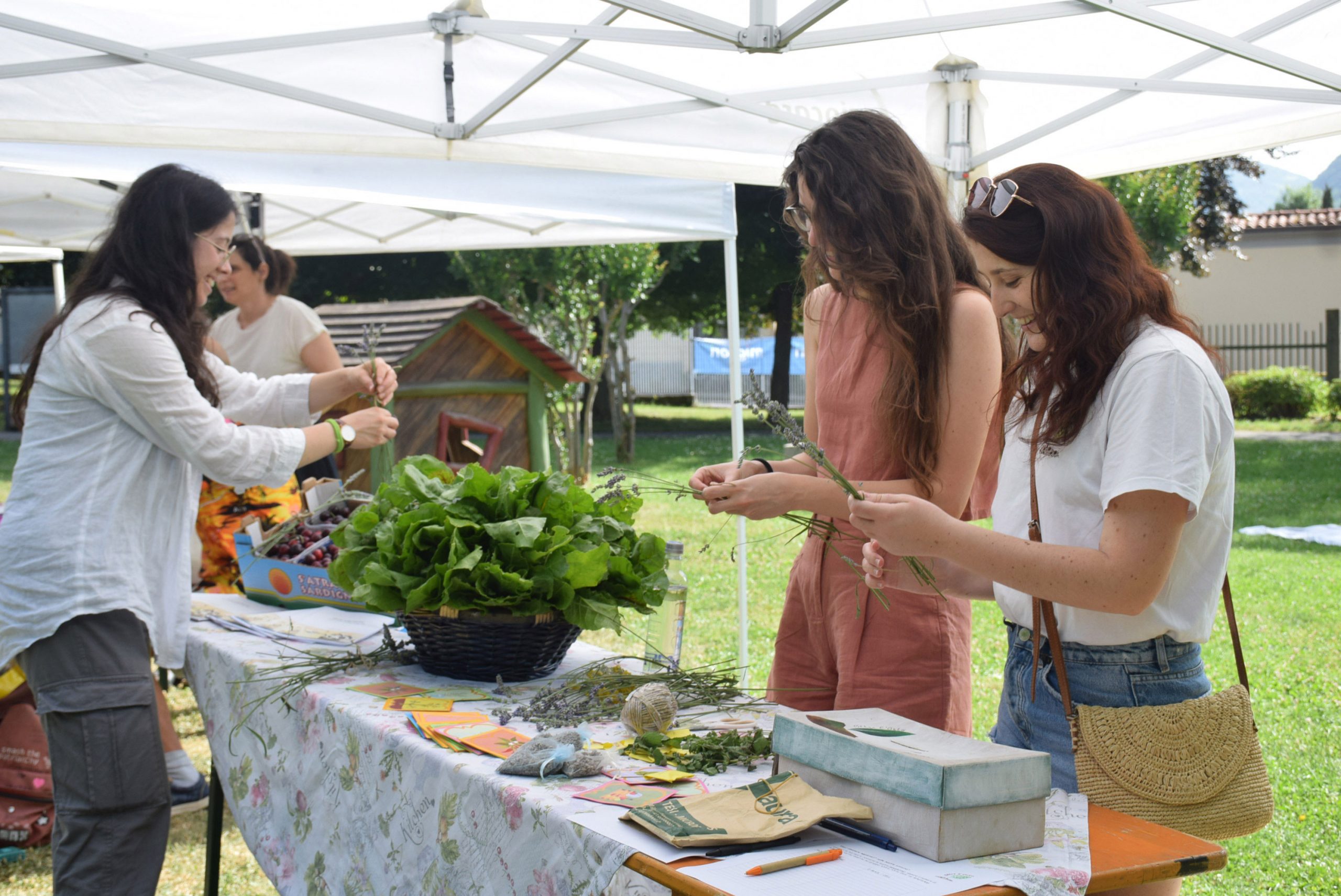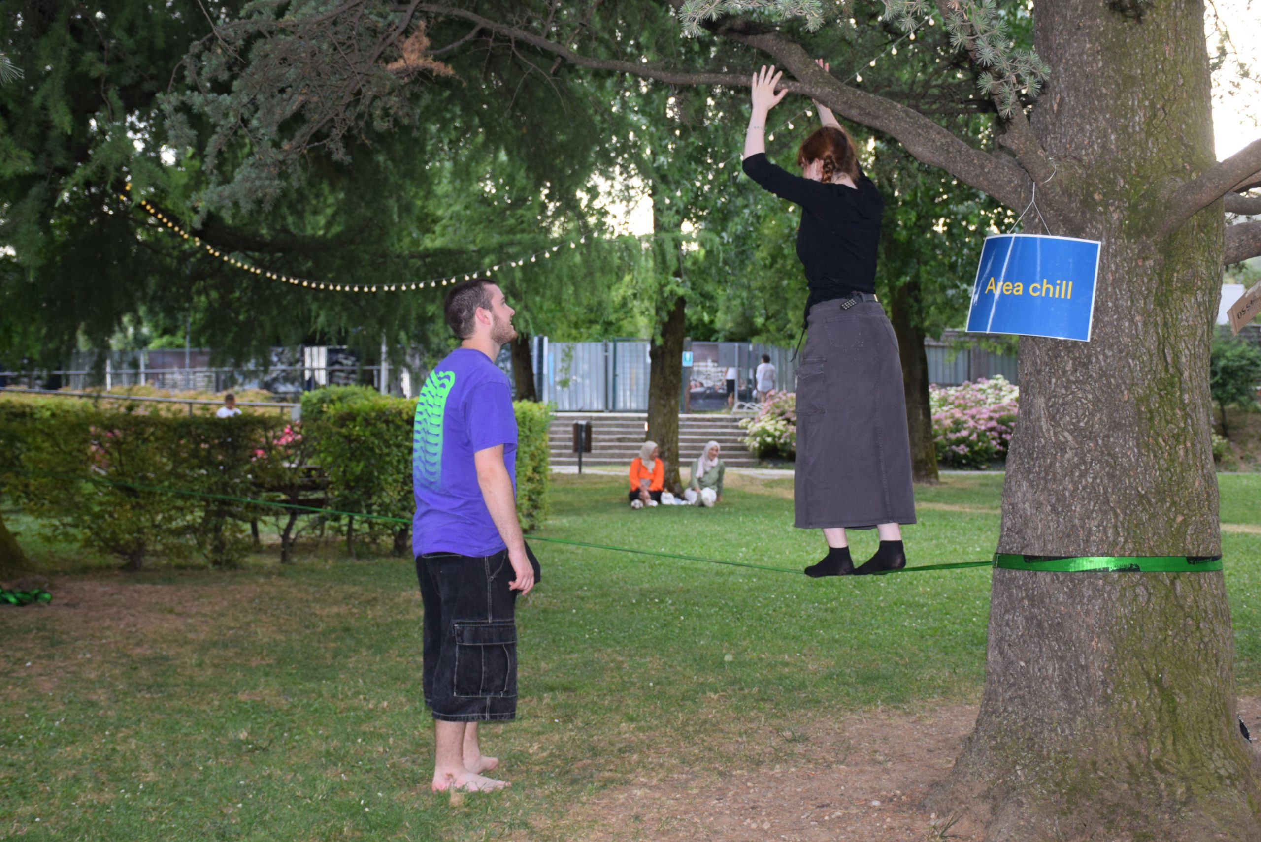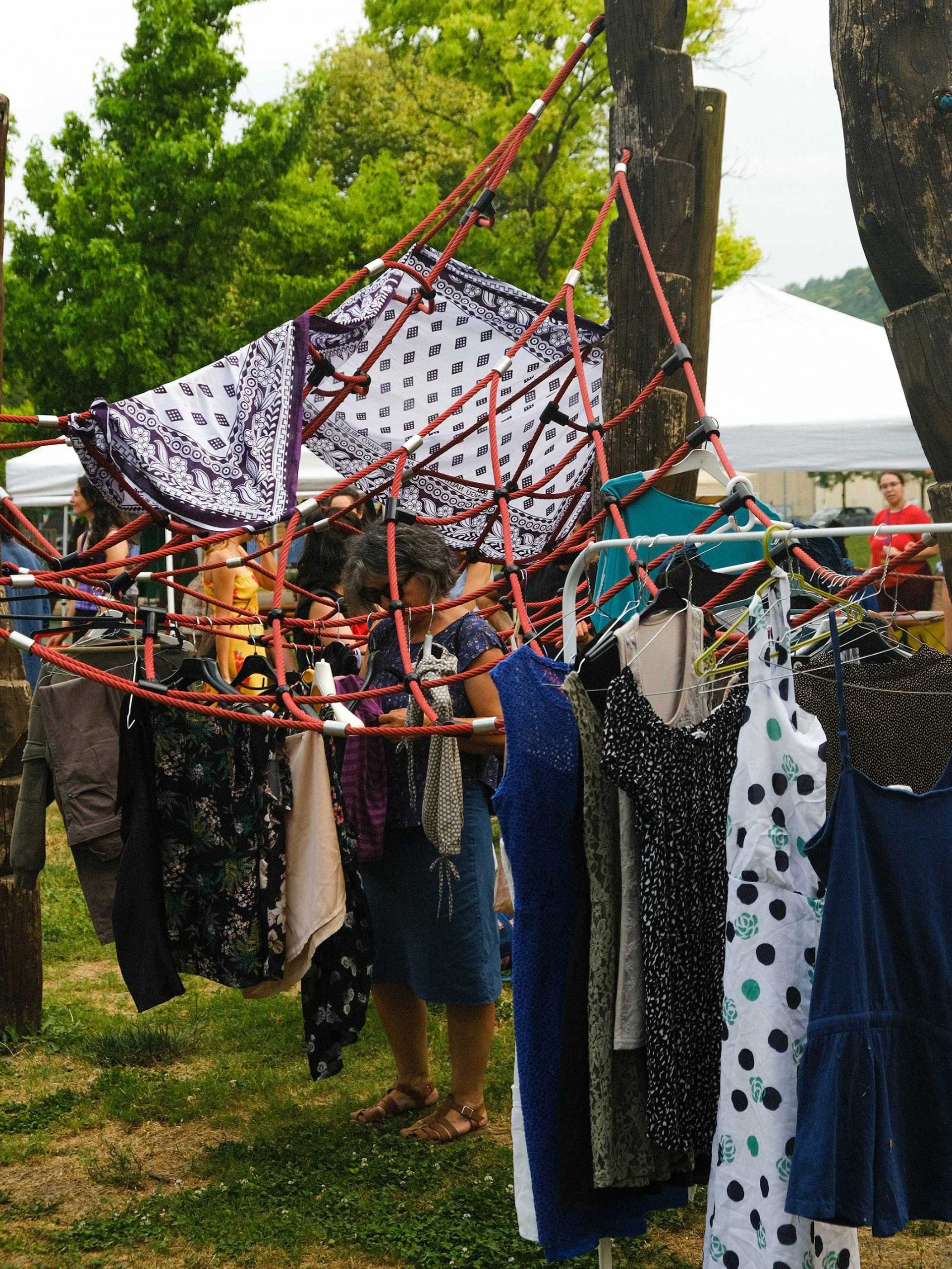 Dopo un pranzo collettivo sedutɜ all’ombra degli alberi, il festival continua anche nel pomeriggio con lo swap party e il laboratorio creativo del collettivo Mendà e del Clan scout Alzano-Nembro: la casetta sopraelevata e le sue funi ora sono un emporio a cielo aperto portano appesi magliette, jeans, abiti colorati ed accessori pronti per essere presi e rivalorizzati con perline, strass, nastri, bottoni, e chi più ne ha più ne metta! Poco lontano c'è chi prova a stare in equilibrio su qualche slack-line, si riposa sui teli nell'Area Chill o vuole raccontare come si sente sulla bacheca colorata. Nell’area delle associazioni, si presentano allɜ visitatorɜ Medici senza frontiere, Azimut Cafè, Fridays for future, Plastic Free BG e Libera Valle Seriana.