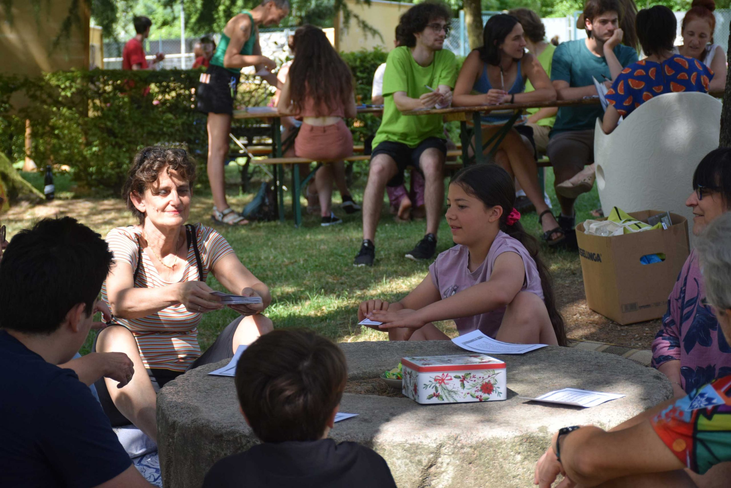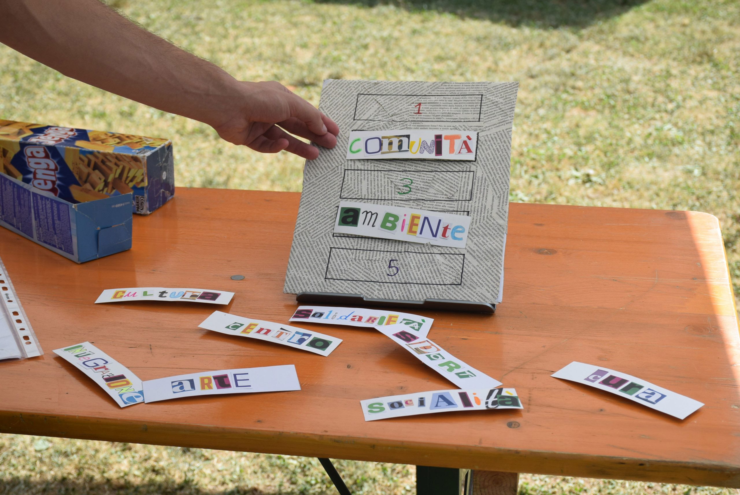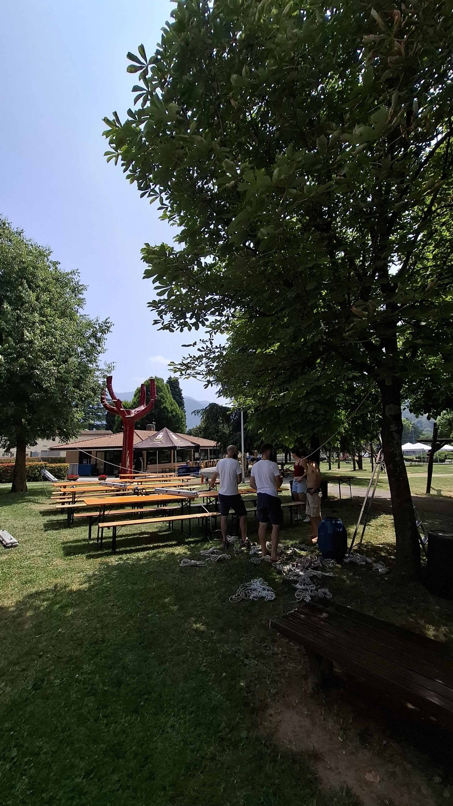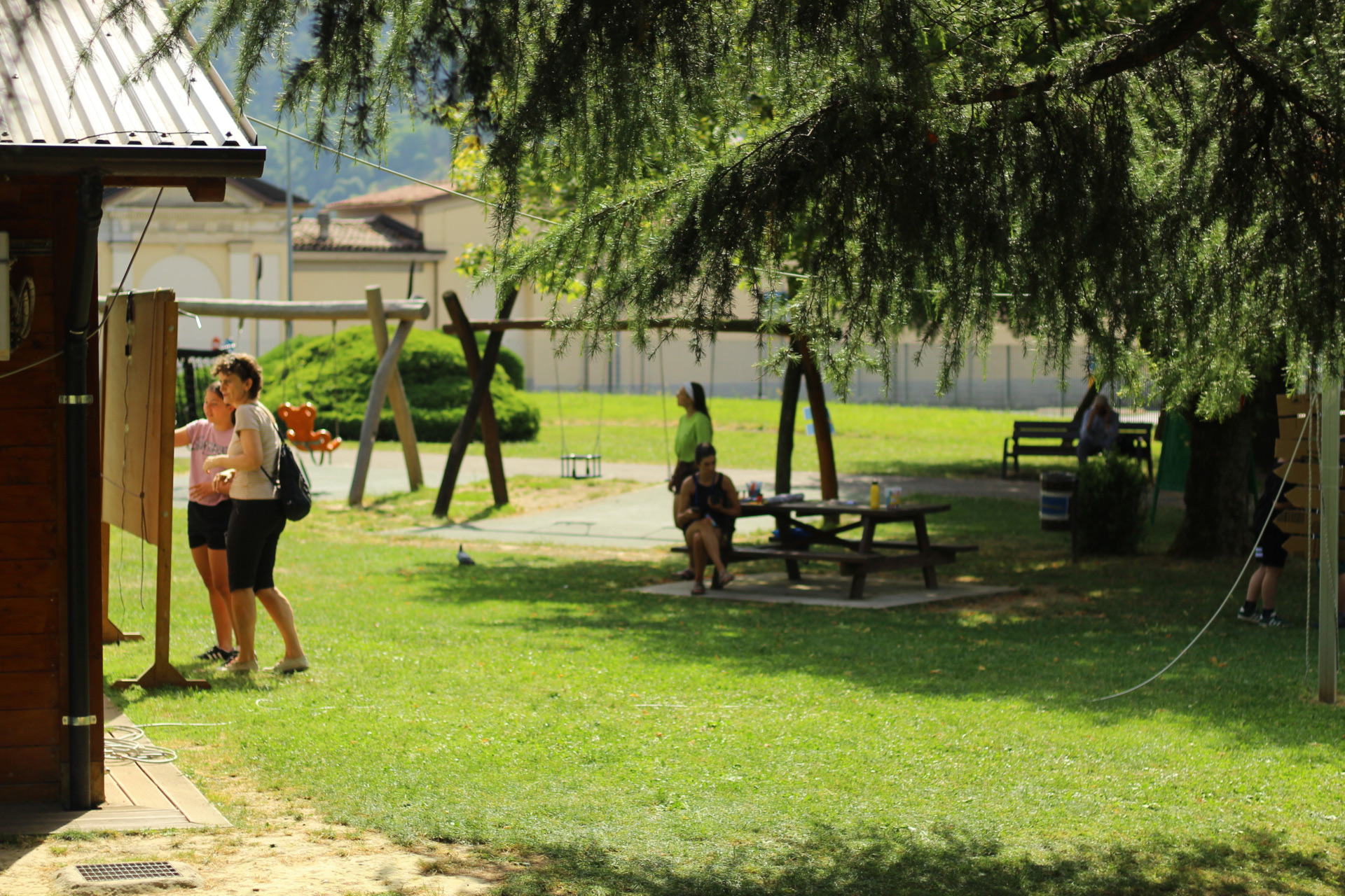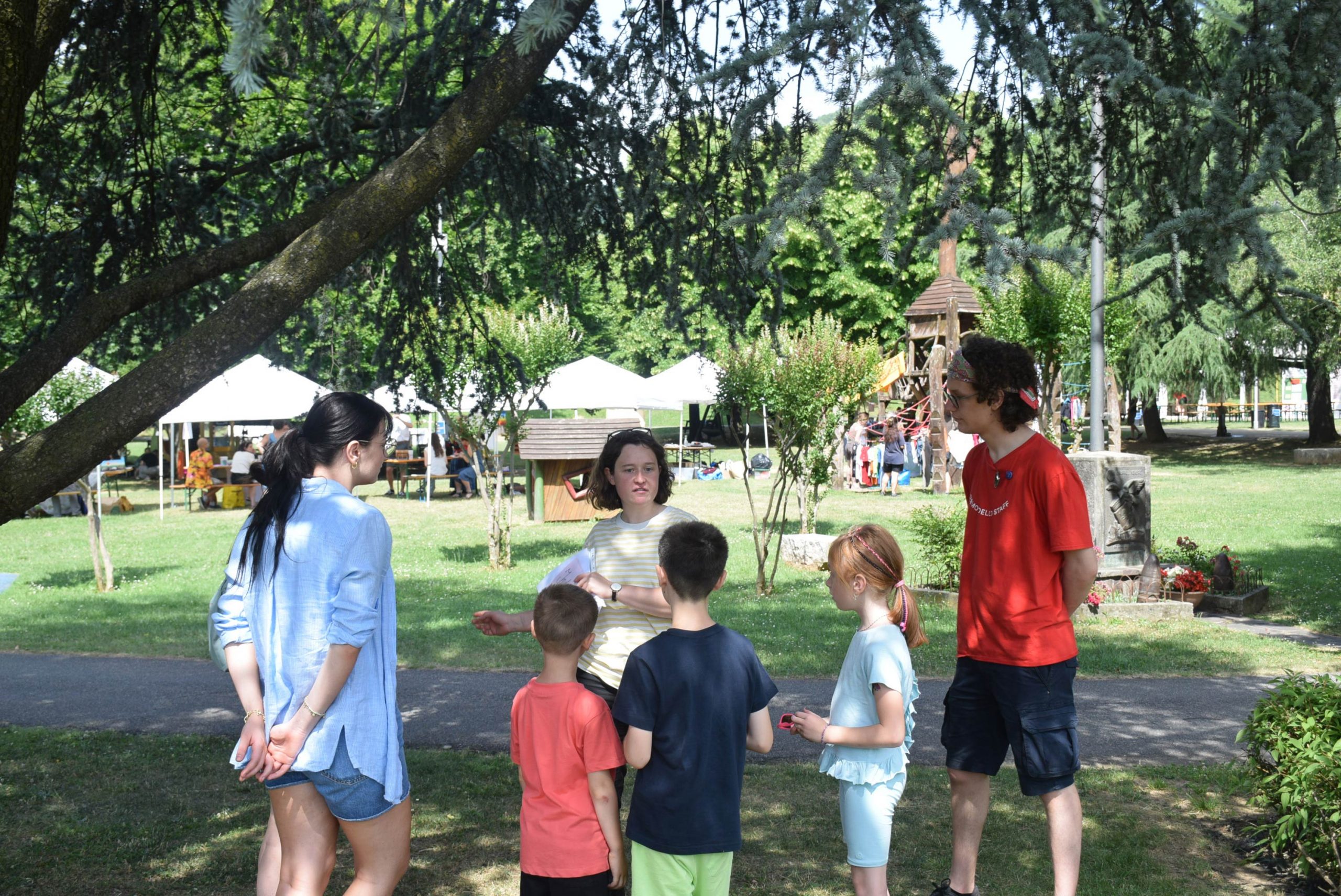 Dopo un pranzo collettivo sedutɜ all’ombra degli alberi, il festival continua anche nel pomeriggio con lo swap party e il laboratorio creativo del collettivo Mendà e del Clan scout Alzano-Nembro: la casetta sopraelevata e le sue funi ora sono un emporio a cielo aperto portano appesi magliette, jeans, abiti colorati ed accessori pronti per essere presi e rivalorizzati con perline, strass, nastri, bottoni, e chi più ne ha più ne metta! Poco lontano c'è chi prova a stare in equilibrio su qualche slack-line, si riposa sui teli nell'Area Chill o vuole raccontare come si sente sulla bacheca colorata. Nell’area delle associazioni, si presentano allɜ visitatorɜ Medici senza frontiere, Azimut Cafè, Fridays for future, Plastic Free BG e Libera Valle Seriana.