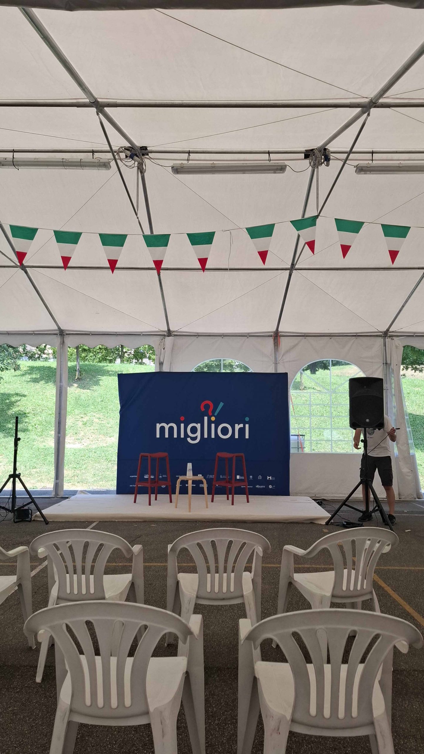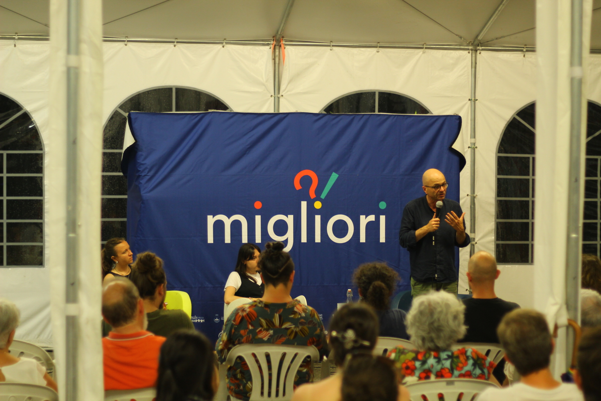 Il pomeriggio continua con Andrea Nonni, volto del progettoThe Pillow. Sedutɜ sotto gli alberi in un teatro improvvisato, ascoltiamo storie di persone che scelgono di vivere in modo non tradizionale, spesso lontano dalla società, ma che sanno condividere storie preziosissime. Poi, durante la cena, il cielo a sud-ovest comincia a rannuvolarsi e lo staff teme il peggio... "Arriva, arriva!", il temporale. Si scatena il panico: bisogna smontare tutto il più velocemente possibile, palco, tavoli, gazebi, salvare i cartelli, staccare i cavi e tuttɜ di corsa sotto il tendone! Qui il professor Filippo Barbera illustra il significato di vivere aree interne e realtà che hanno trovato la forza per farlo; ci ricorda che lɜ giovani hanno gli strumenti per dare valore vero al proprio territorio. Lo staff rientra alla base e, a ringraziamenti fatti, si conclude Migliori Days, per questa nuova e brillante edizione. L'ultimo atto, una foto di gruppo, di noi, scalzɜ, fradicɜ, eppure felici.