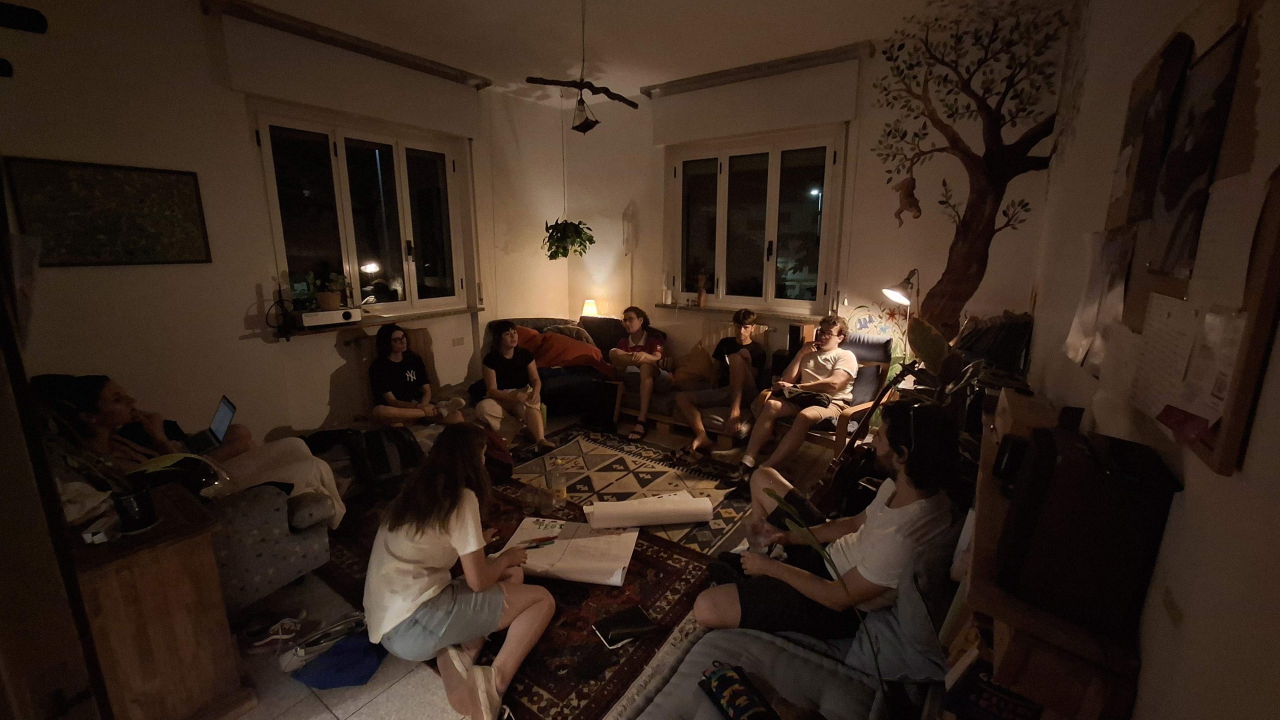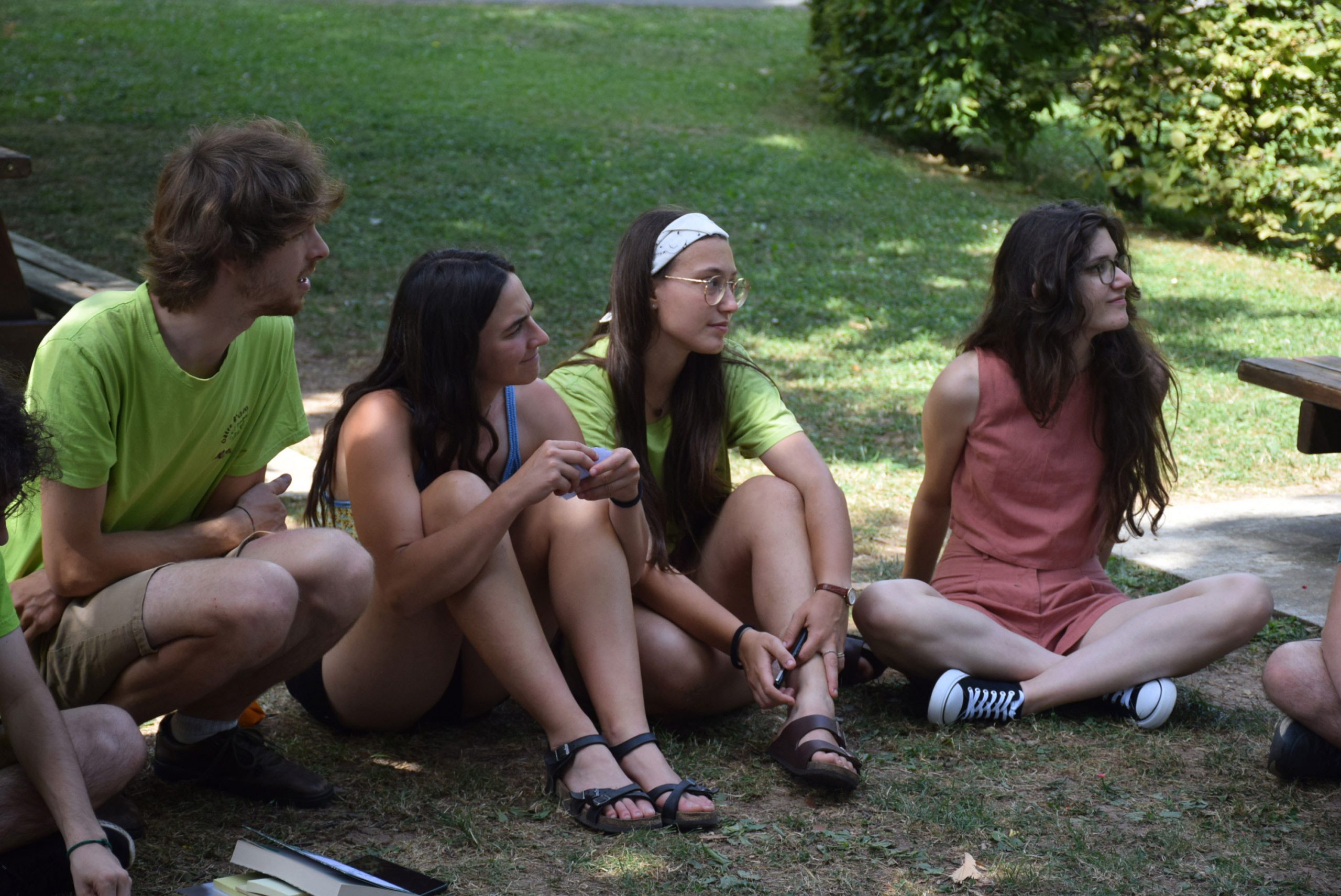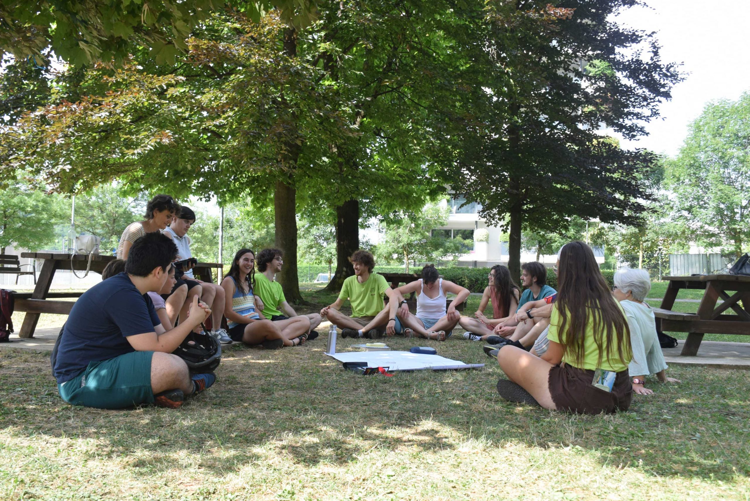 Sotto il sole cocente del primo pomeriggio hanno inizio le tavole rotonde che offrono altre occasioni per partecipare in prima persona al festival. Così, in piccoli gruppi lɜ partecipanti iniziano a condividere ciò che significa per loro abitare. Con le ACLI di Bergamo inizia una discussione sulle politiche dell’abitare a Bergamo e su come le comunità possono avere un ruolo attivo nella progettazione urbana. Con Chiara Pini si discute dell’abitare collaborativo in Italia. Il consorzio SBAM, invece, propone allɜ partecipanti di costruire insieme un condominio sociale. Infine, il gruppo WeCare e lɜ camminatorɜ di Step by Step si uniscono per un momento di restituzione delle loro rispettive esperienze, su come hanno sperimentato un nuovo modo di abitare il nostro territorio e la nostra socialità, che sia nella dimensione dell'aggregazione giovanile o nei passi sulla Via delle Sorelle.