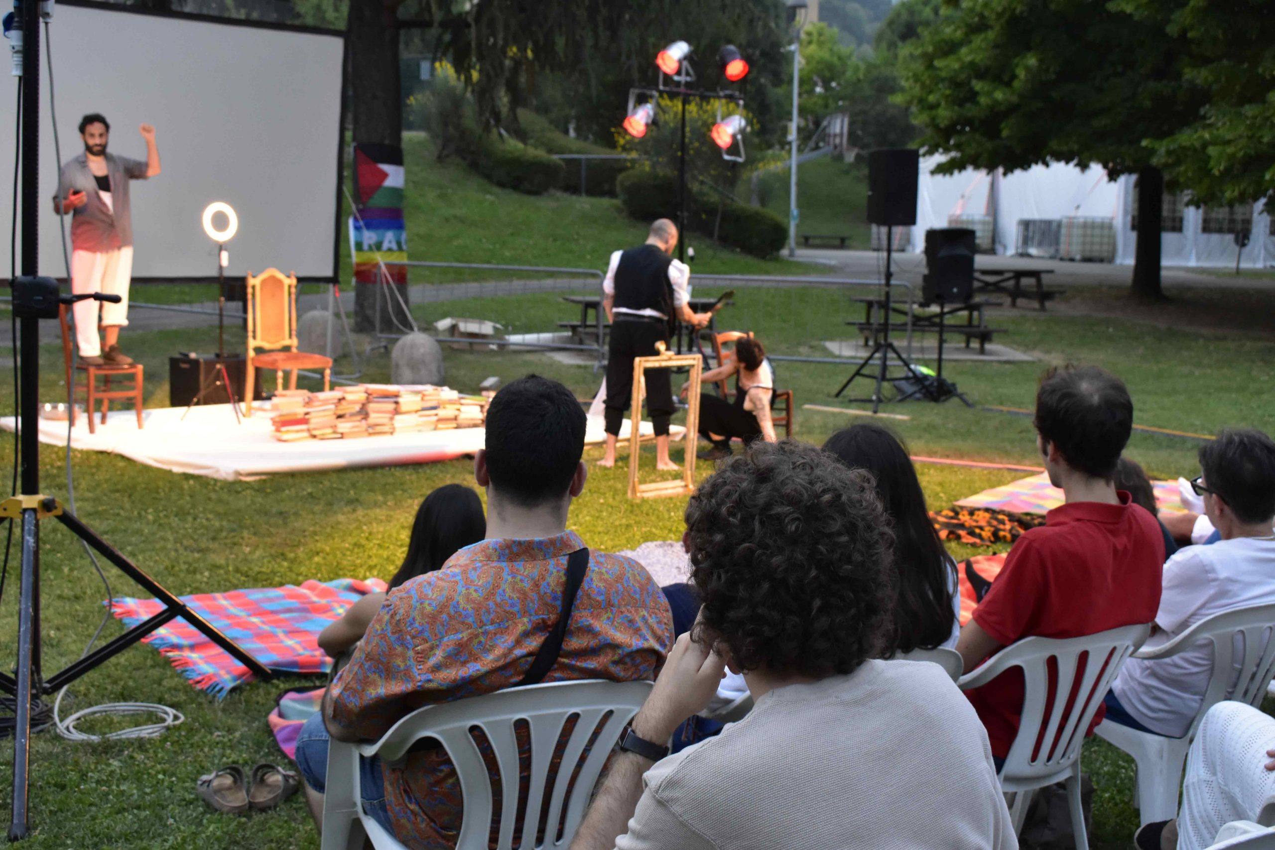 La prima sera il parco si è trasformato in un grande palcoscenico dovela compagnia teatrale Zamisdat ha messo in scena Eresia&Cosmesi, un viaggio attraverso la consapevolezza del proprio corpo e delle proprie relazioni. Le luci soffuse e la frescura degli alberi hanno creato l'atmosfera perfetta per godersi questa prima esibizione.